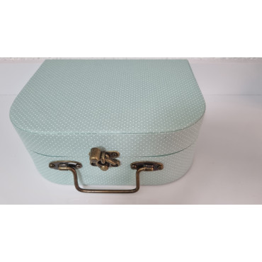 Kit de Maleta Verde tamanho P:Excelente presente para decorar ou organizar o quarto do bebê.Uma linda embalagem ou decoração. Esse Kit contém:01 sapatinho, 01 luvinha e 01 touca de linho v..